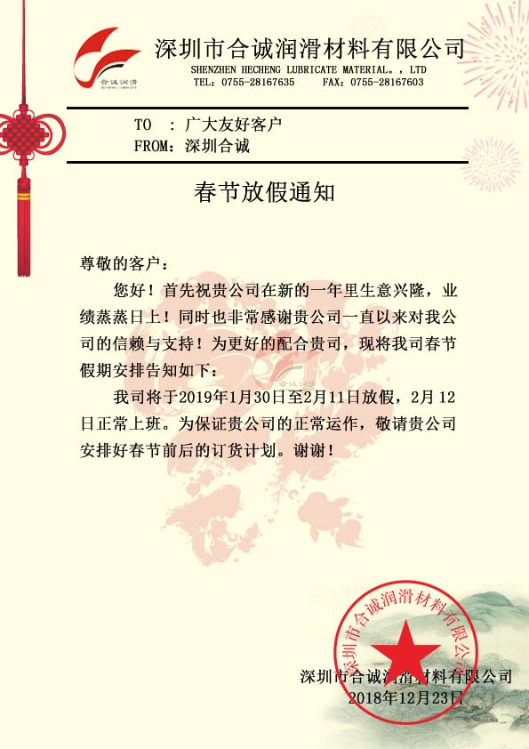 深圳合誠2018年春節放假通知