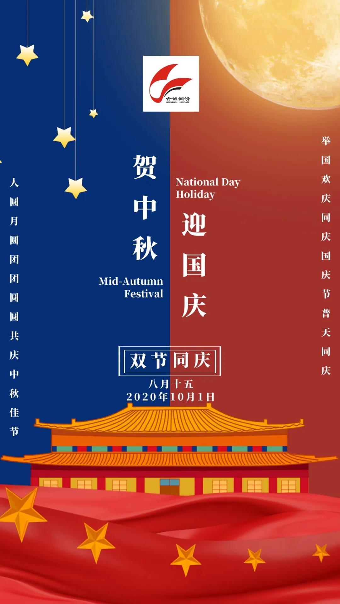 國是家的港灣,家是人的歸屬。在這個舉家團圓的日子里,我們迎來了祖國71歲華誕!在國慶和中秋雙節到來之際,深圳合誠全體員工祝愿祖國繁榮昌盛!祝福大家好事成雙,月滿人滿,盆滿缽滿,節日快樂!